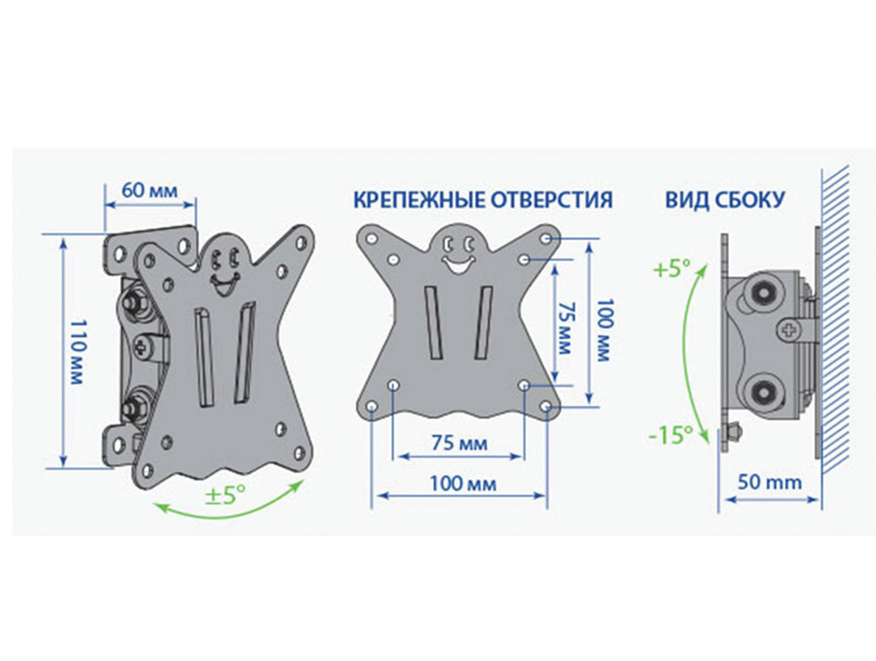 размеры креплений VESA 75 х75, 100x100