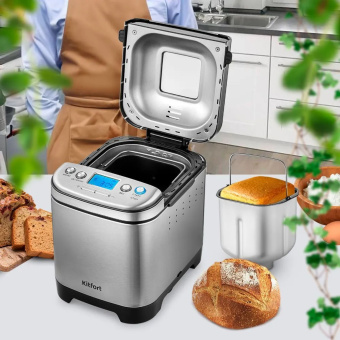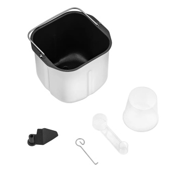 В комплекте есть уже всё необходимое, чтобы начать творить домашнюю выпечку или десерты: мерный стакан и мерная ложка, крюк для извлечения лопатки, а также рецепты - от классического до безглютенового хлеба.