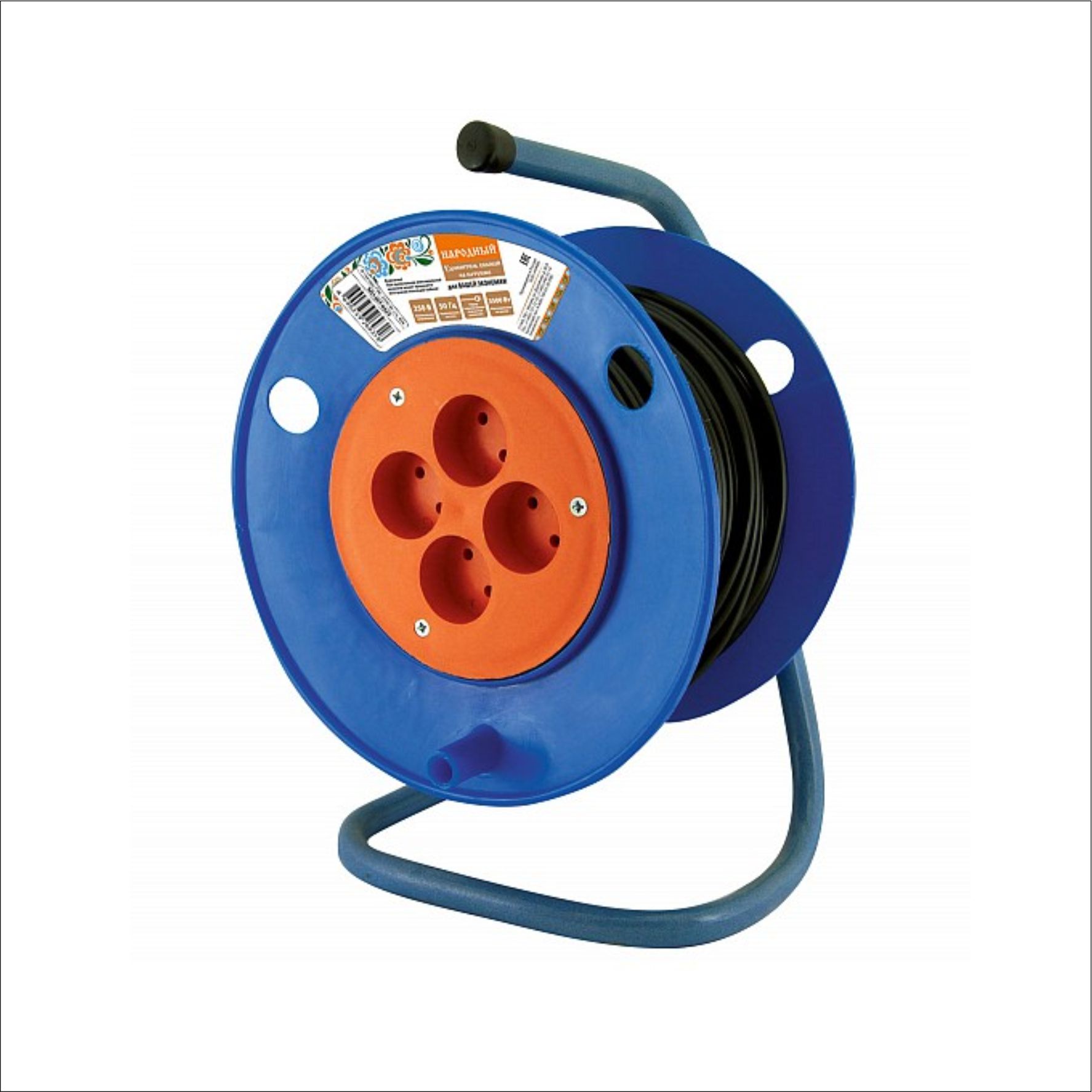 Конструкция крепления барабана обеспечивает легкость намотки провода любого сечения