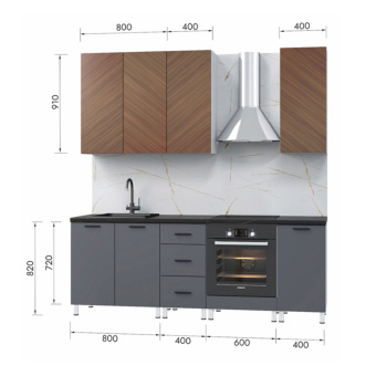 - фасады: шкаф настенный /шкаф стол кухонный :МДФ (16мм) односторонняя -«Шпон орех натуральный» / «темный пепел софт»
