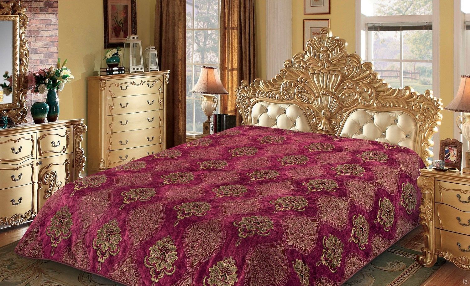 Бархатное покрывало премиум класса. Бархат представляет собой мягкую плотную ткань с коротким ворсом. Края обработаны шелковой бейкой в тон. Изделия из бархата смотрятся очень роскошно, ведь короткий ворс позволяет ткани переливаться, привлекая к себе внимание.