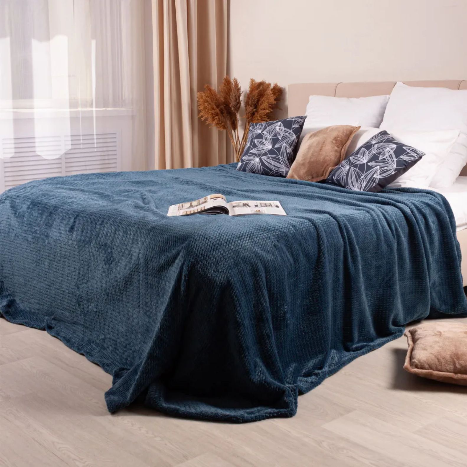 Декоративные элементы, такие как прошитый край, добавляют пледу элегантности и стиля, делая его не только функциональным, но и прекрасным дополнением к интерьеру вашего дома.