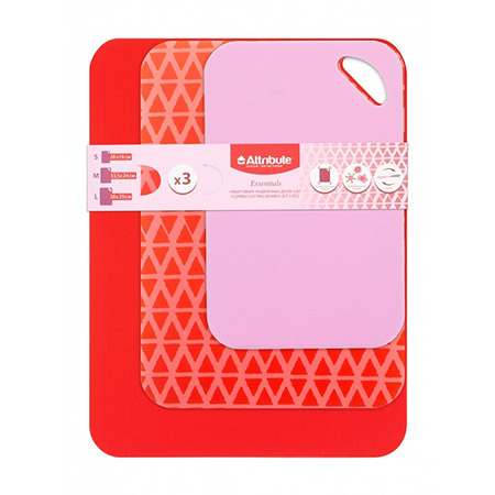 В набор входят три доски разного цвета и размера, которые можно использовать для разного типа продуктов. Легко скручиваются, благодаря чему будет легче переместить нарезанные продукты в сковороду или кастрюлю. После использования доску достаточно сполоснуть теплой водой и высушить.
