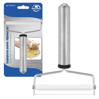 Со струнной сырорезкой гораздо проще приготовить бутерброды и закуски – ломтики получаются аккуратными, одинаковыми по толщине. Рабочая часть состоит из ролика и струны. Ролик плавно перемещается по кусочку сыра, делая нарезку струной проще и легче. Струнная сырорезка безопасна, поскольку не имеет остро заточенных лезвий.