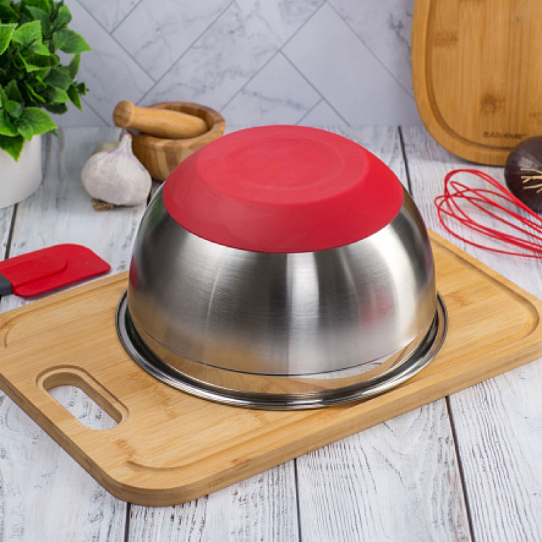 Благодаря антискользящему силиконовому дну миска очень устойчива и не скользит по поверхности. Широкий бортик позволяет удобно перемешивать продукты, а плотно прилегающая силиконовая крышка сохранит свежесть и аромат содержимого.