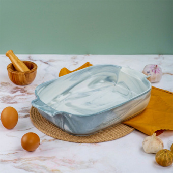Форма для запекания MARBLE имеет прямоугольную форму. Она изготовлена из фарфора, что делает ее прочной и долговечной. Благодаря прямоугольной форме, она идеально подходит для запекания различных блюд, таких как запеканки, пироги, кассеролы и многое другое.