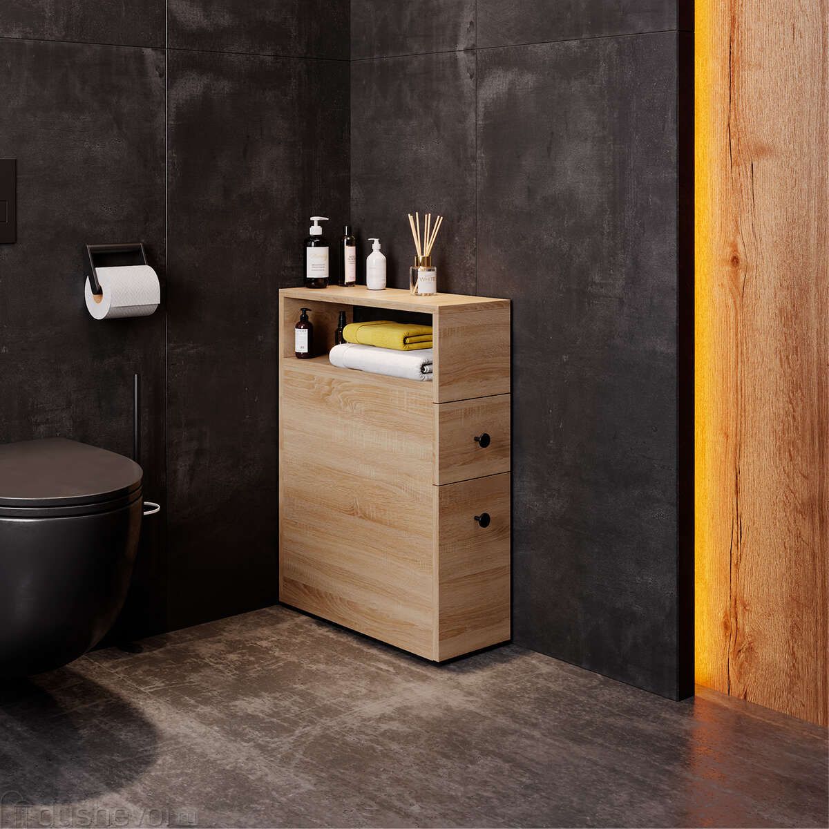 Узкий полупенал Onika Кроун 20 - отличная альтернатива привычным открытым полкам: он позволяет максимально скрыть весь визуальный шум от разноцветных упаковок средств, применяемых в быту. Пенал подходит для размещения в даже в очень компактном пространстве, универсальный белый цвет удачно впишется в любой интерьер. Полупенал прослужит органайзером для хранения средств личной гигиены, туалетной бумаги, для чистящих и моющих средств, для ароматизаторов и для освежителя воздуха, а также прочих аксессуаров, которые удобно держать рядом под рукой. Два выдвижных ящика выдерживают вес до 20 кг. Полупенал выполнен из ЛДСП, устойчивой к механическим воздействиям, перепадам температур и высокой влажности.