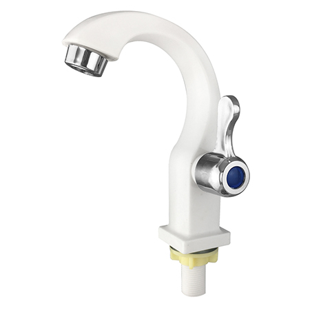 Кран на одну воду, из высокопрочного пластика АБС, белый, с хромированным аэратором для экономии воды.