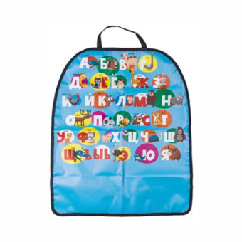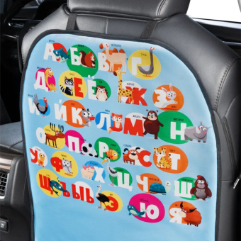 Защищает спинки сидений переднего ряда от грязи, пыли. Материал накидки устойчив к механическому воздействию и выцветанию. Защита мало весит, занимает мало места, её удобно хранить в виде рулона. Удобные резинки на подголовнике и внизу накидки шириной 2 см надёжно фиксируют её, исключая смещение по сидению. Края обработаны тесьмой, что увеличивает срок службы изделия. Защита проста в уходе, практична. Веселый принт в виде алфавита развлечёт ребенка и не даст ему заскучать в дороге.
